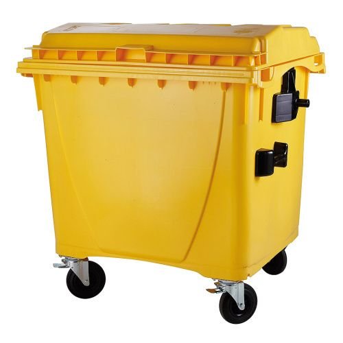 Plastový kontejner s plochým víkem 1100 l žlutý