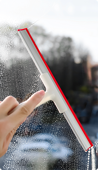 Stírání vody, čisticích prostředků a nečistot ze skleněných ploch. Vhodné na okna i zrcadla.